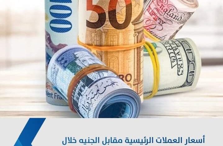 أسعار العملات الرئيسية مقابل الجنيه خلال التعاملات الصباحية للبنوك اليوم