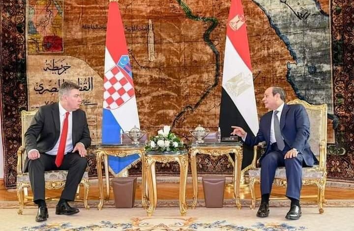 وقد تناول الرئيسان سبل المضي قدماً في تعزيز وتنمية العلاقات الثنائية بين البلدين في مختلف المجالات، بما يساهم في تحقيق مصالح الشعبين المصري والكرواتي، حيث تم التوافق على تكثيف الزيارات الثنائية المتبادلة على مختلف المستويات، بهدف تعميق التعاون على جميع الأصعدة، خاصةً ما يتعلق بتعزيز التعاون السياحي في ضوء تجربة كرواتيا المتميزة في هذا الصدد، وكذا العلاقات الاستثمارية بين البلدين، لتعزيز مواجهة التحديات التي تفرضها الأزمة الاقتصادية العالمية، وتعظيم الاستفادة مما تتيحه المشروعات التنموية الحالية في مصر من فرص استثمارية متنوعة، لاسيما في المنطقة الاقتصادية لقناة السويس، فضلاً عن تعظيم حجم التبادل التجاري، والتعاون لتعزيز أمن الطاقة في كل من منطقة حوض البحر المتوسط والقارة الأوروبية.