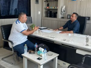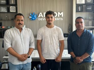 رجل الأعمال المصري خالد حميدة يستقبل محمد.شعبان الشهير بحمزة بطل مصر وافريقا واسيا والعرب في الملاكمة داخل مكتبة