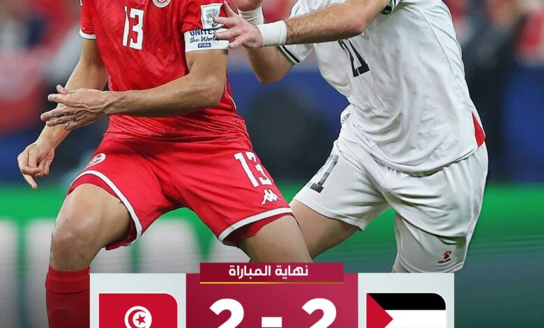 منتخب فلسطين يواصل تألقه في كأس العرب ويتعادل مع تونس بهدفين.
