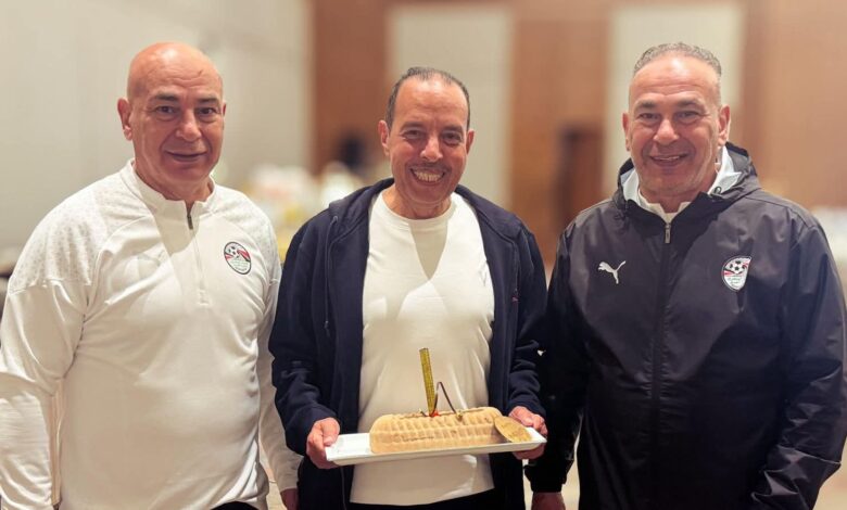 حرص منتخب مصر بقيادة التوأم حسام و إبراهيم حسن على الاحتفال بعيد ميلاد الرباعي حماده الشربيني عضو مجلس إدارة اتحاد الكرة ورئيس البعثة و سعفان الصغير مدرب حراس مرمي المنتخب و ثنائي الفريق أسامه فيصل و أحمد عيد عقب انتهاء تدريب الفريق مساء اليوم .