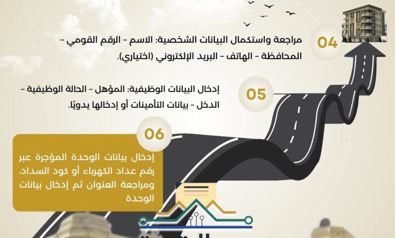 وزارة الإسكان تنشر إنفوجراف يتضمن طريقة التقديم للمستأجرين المخاطبين بقانون الإيجار القديم للحصول على وحدات بديلة