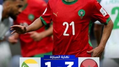 المنتخب المغربي يتغلب على جزر القمر بثلاثية في كأس العرب.